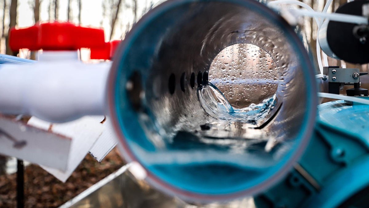 Pumping sap to the sugar shack. Photo courtesy Jodie Aldred Photography: www.jodiealdredphotography.com